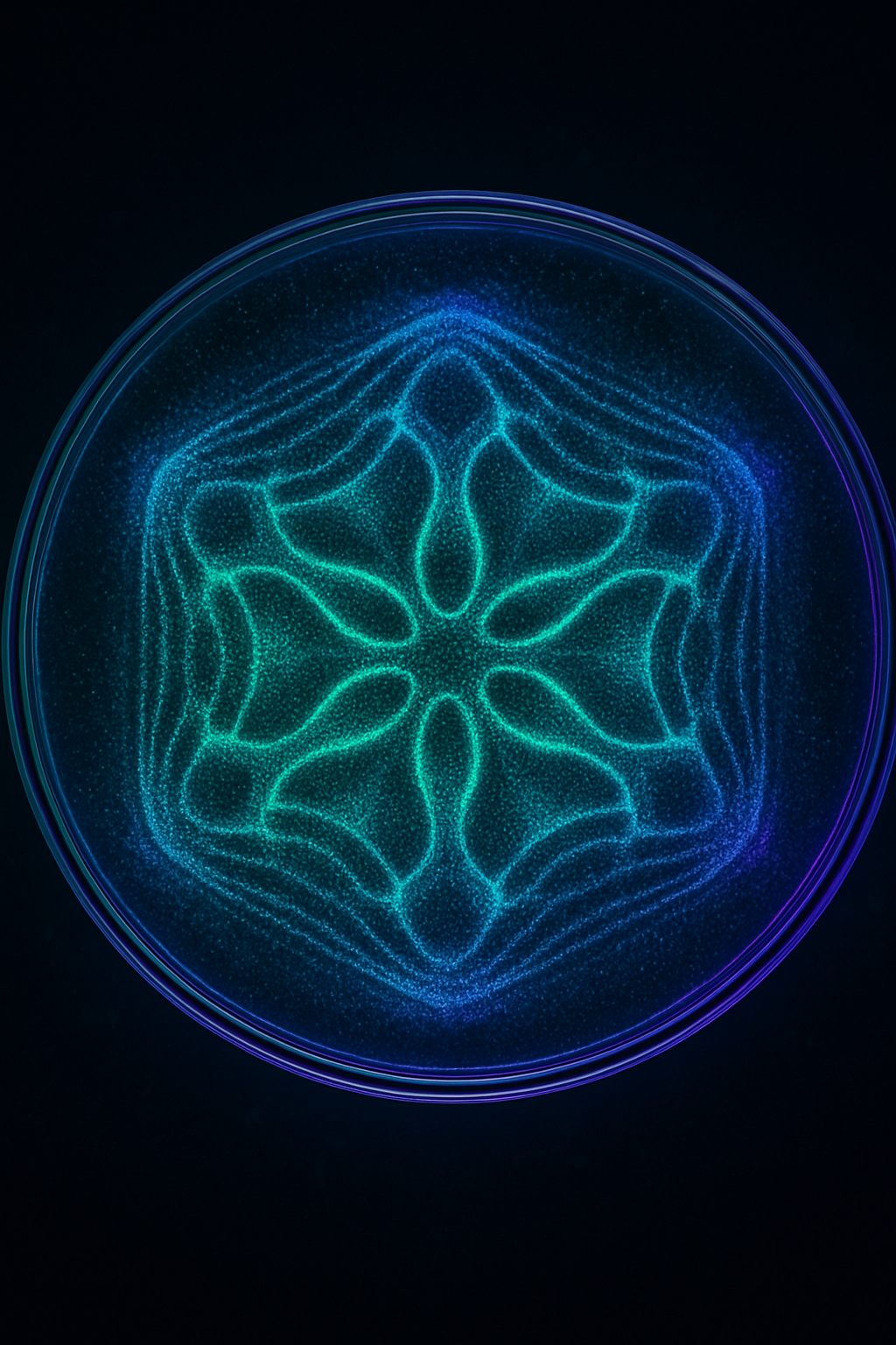 Example: sprinkle sand on a metal plate, play a tone, and the sand arranges into geometric shapes.